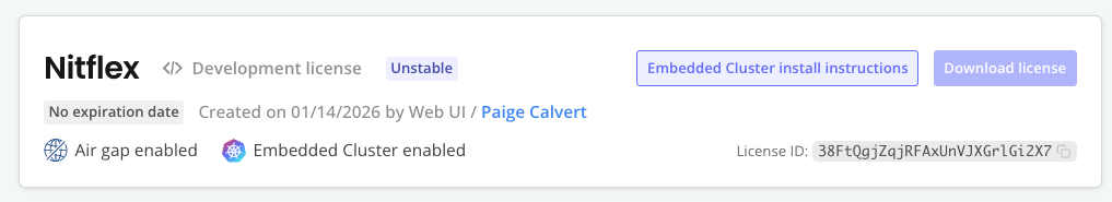 At the top of the page for the customer you just created, click Embedded Cluster install instructions.